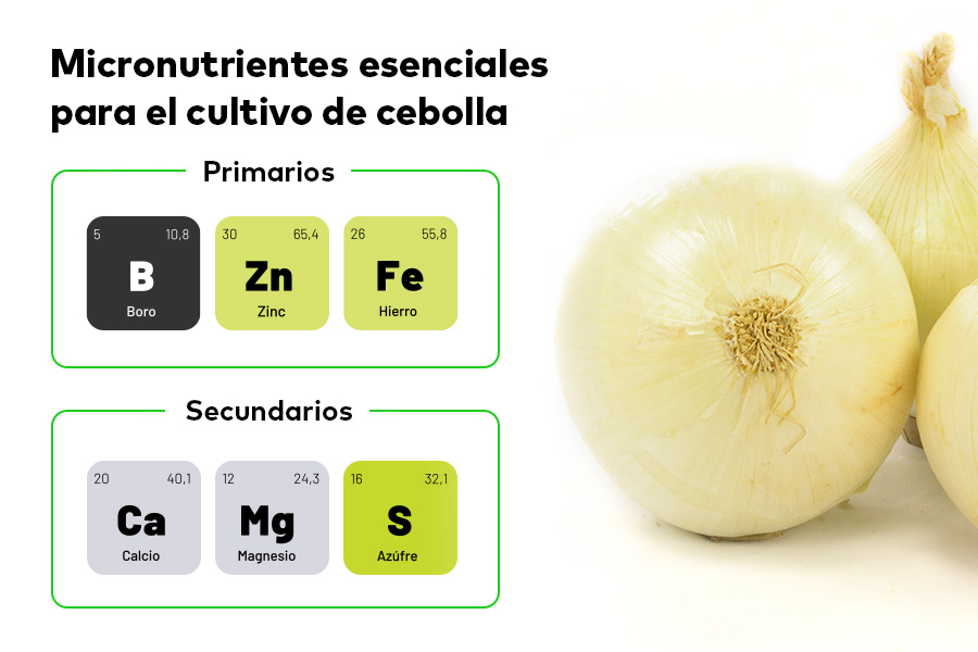 Algunos de los micronutrientes más importantes para el cultivo de cebolla incluyen: